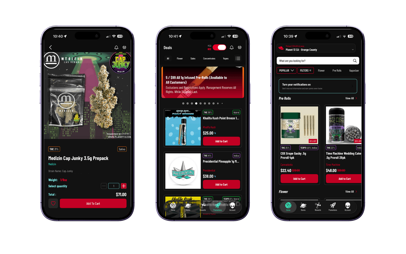 While Planet 13 already had a mobile presence, they saw an opportunity to significantly improve performance, design, and usability. Partnering with Digital Awesome, Planet 13 transformed their app into a polished, brand-forward experience that makes promotions, rewards, and shopping faster and more intuitive than ever.